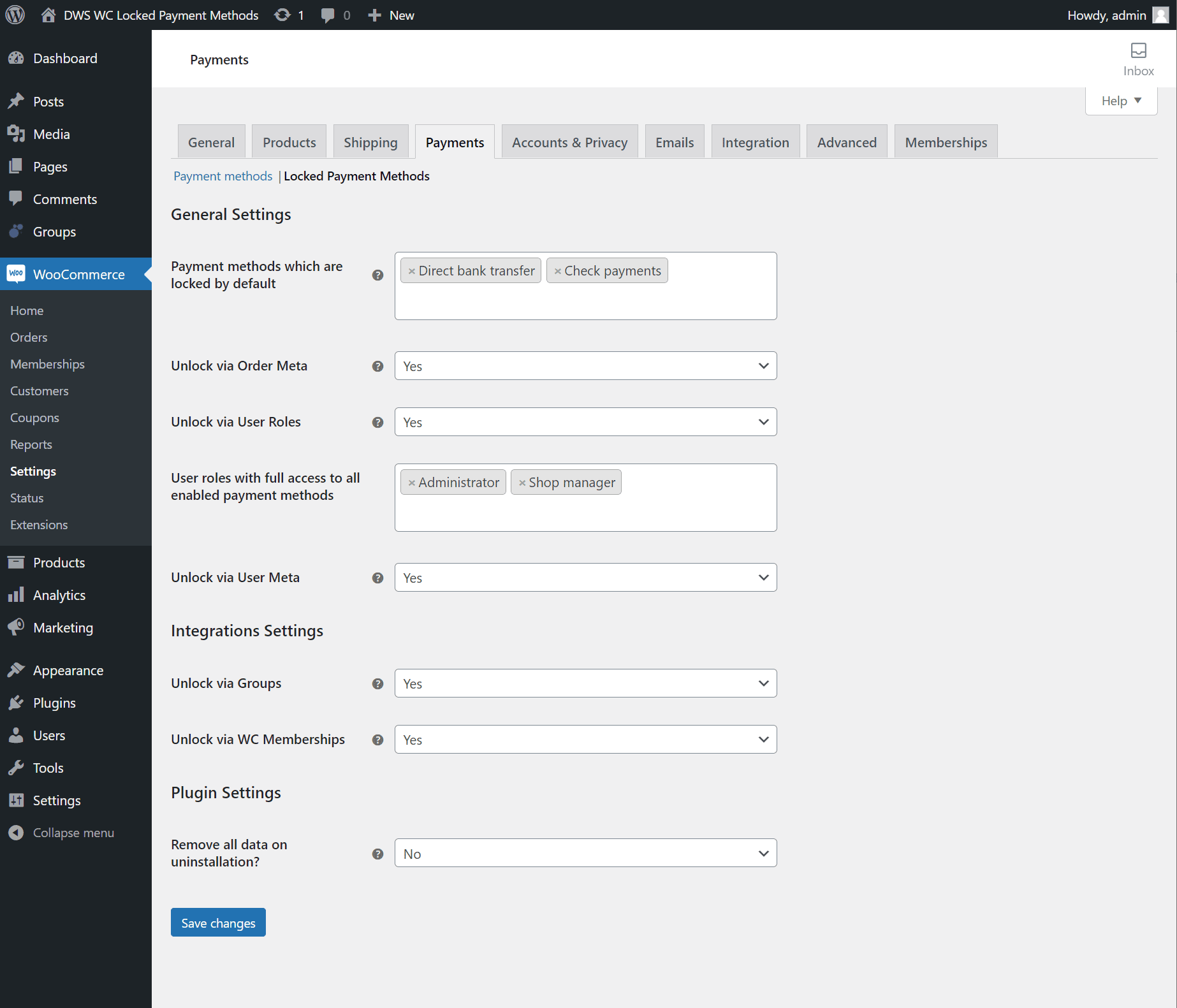 In order to grant access to locked payment methods to individual users please first make sure that the Unlock via Order Meta settings is set to Yes on the plugin’s settings page:
