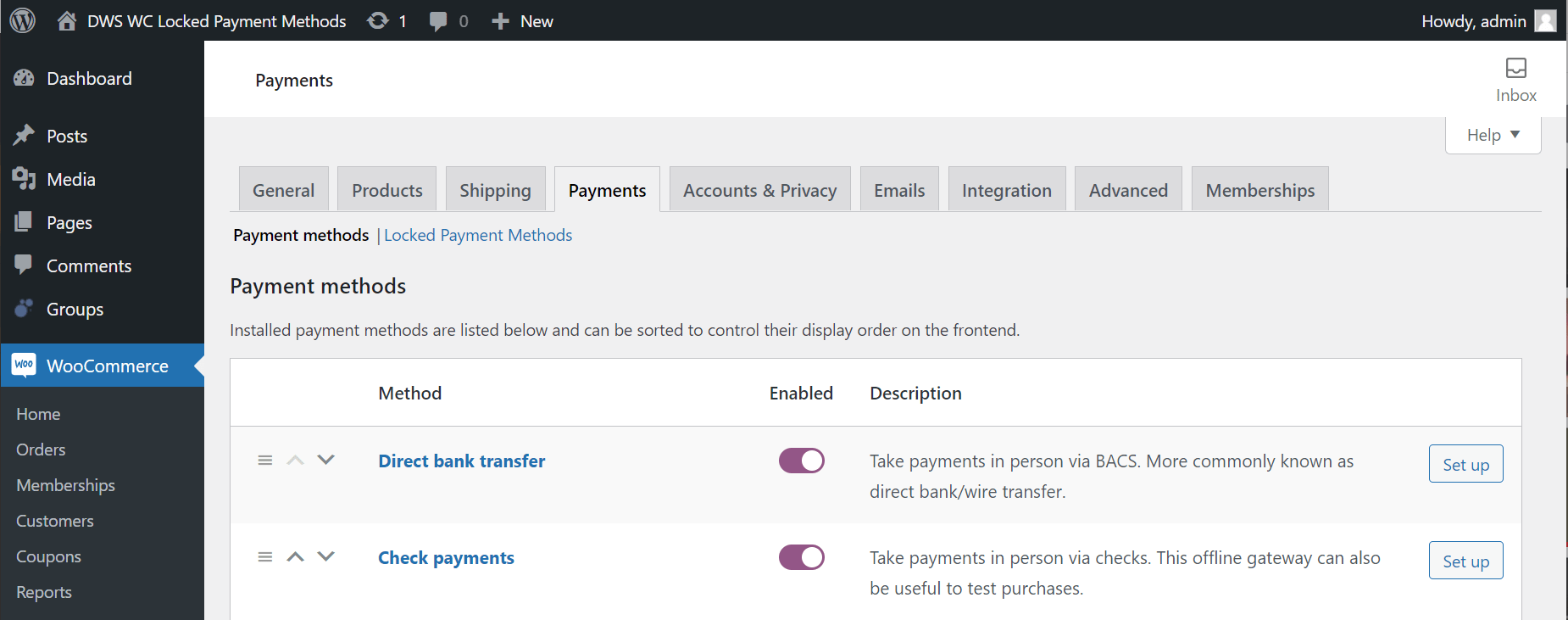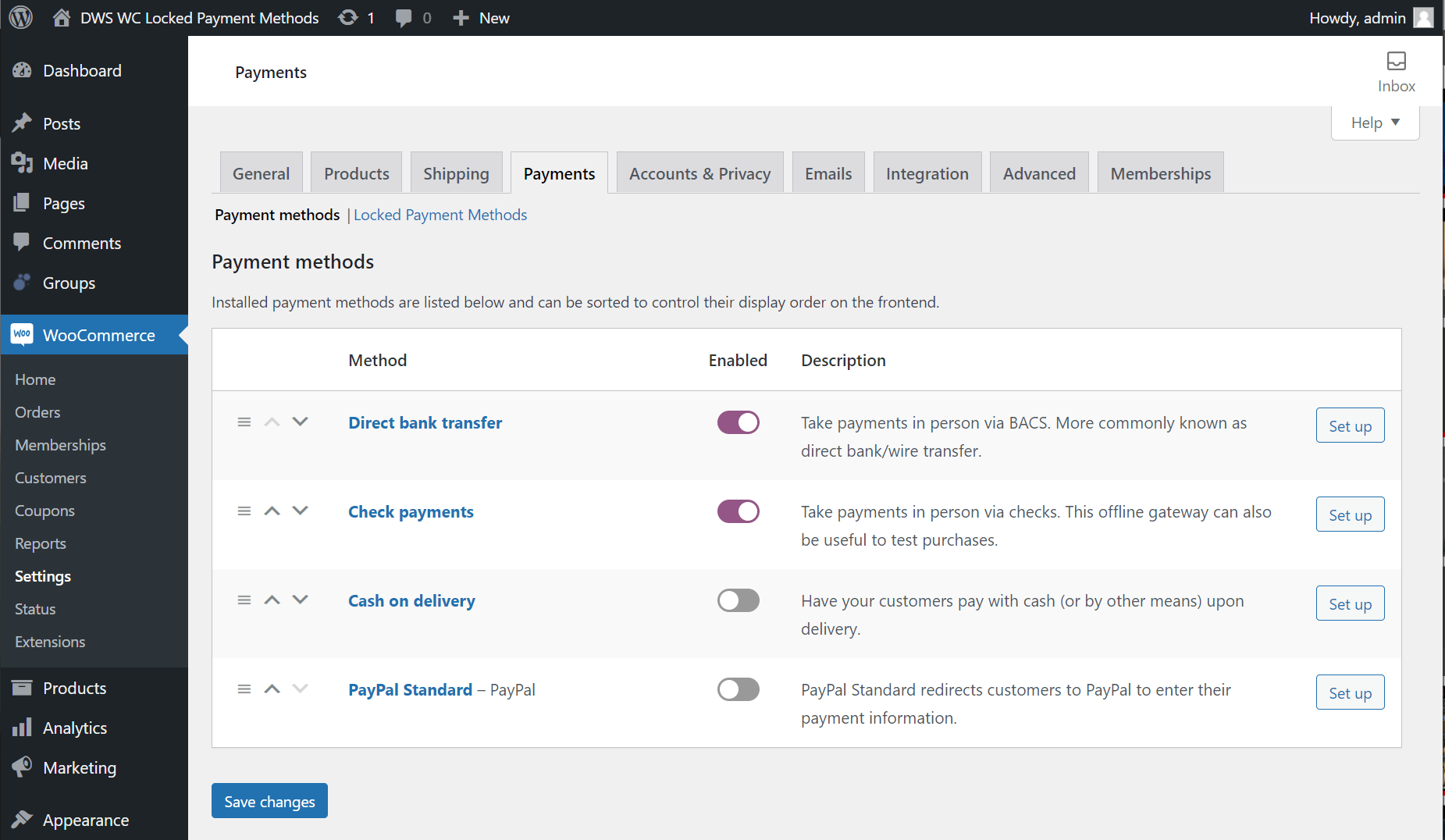 In order to lock a payment method you need to first navigate to the plugin’s settings page: